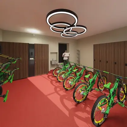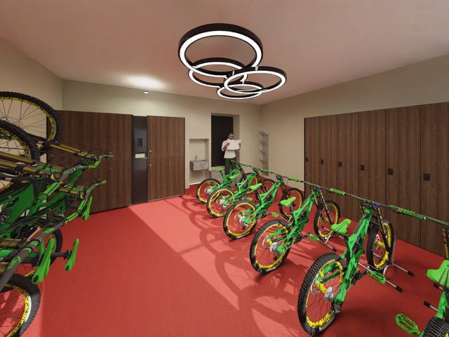 Abschließbarer Fahrrad- und Skiraum neben dem Hoteleingang, zugänglich mit der Zimmer-Keycard.