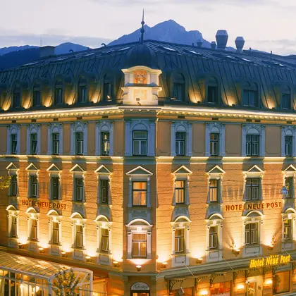 The Hotel Neue Post Innsbruck impresses with its central location in Maximilianstraße, just a few minutes' walk from the Triumphal Gate and Maria-Theresien-Straße. From our hotel, you can easily reach the city's most important sights on foot, including the famous Golden Roof, the Hofburg and the Nordkette.